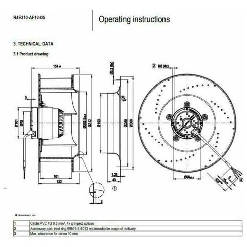 R4E310-AF12-05 Centrifugal Fan 230VAC 105/150W For Inverter Cooling Fan